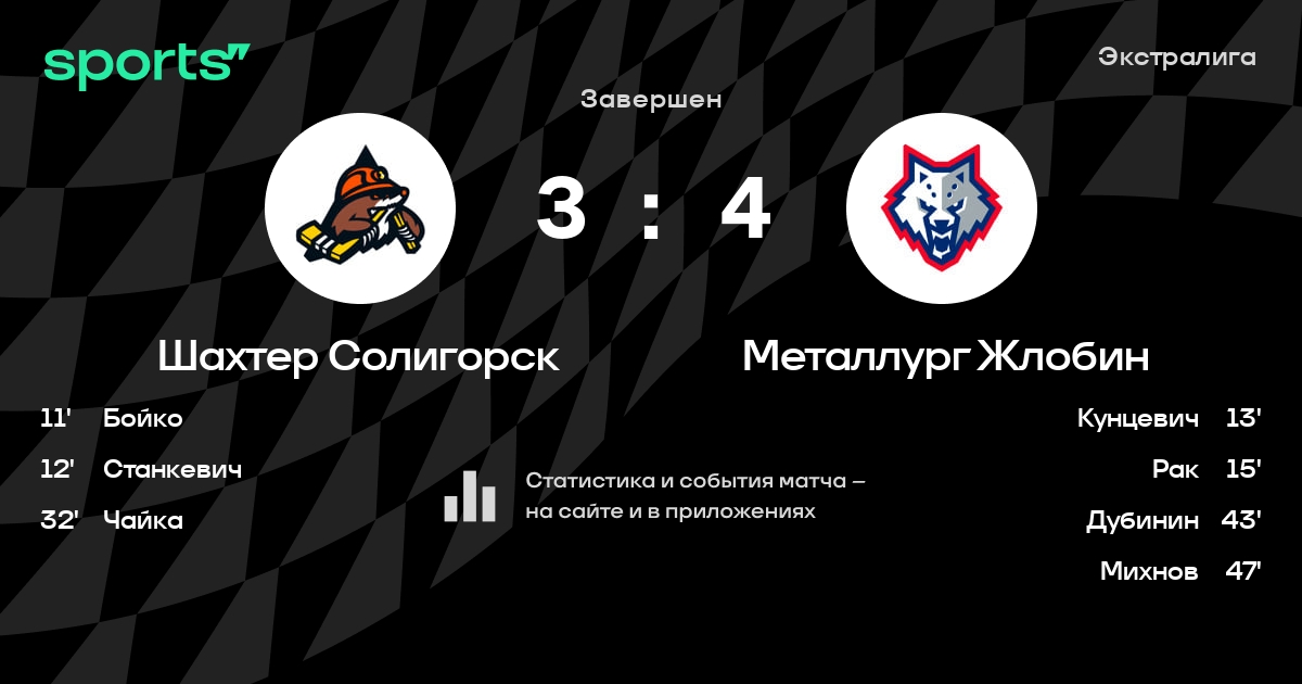 В прошедшем матче в рамках турнира Экстралига состоялась встреча команд Шахтер Солигорск - Металлург Жлобин в городе Солигорск (Беларусь) на стадионе Ледовый дворец спорта Солигорск (вместимость - 1800)