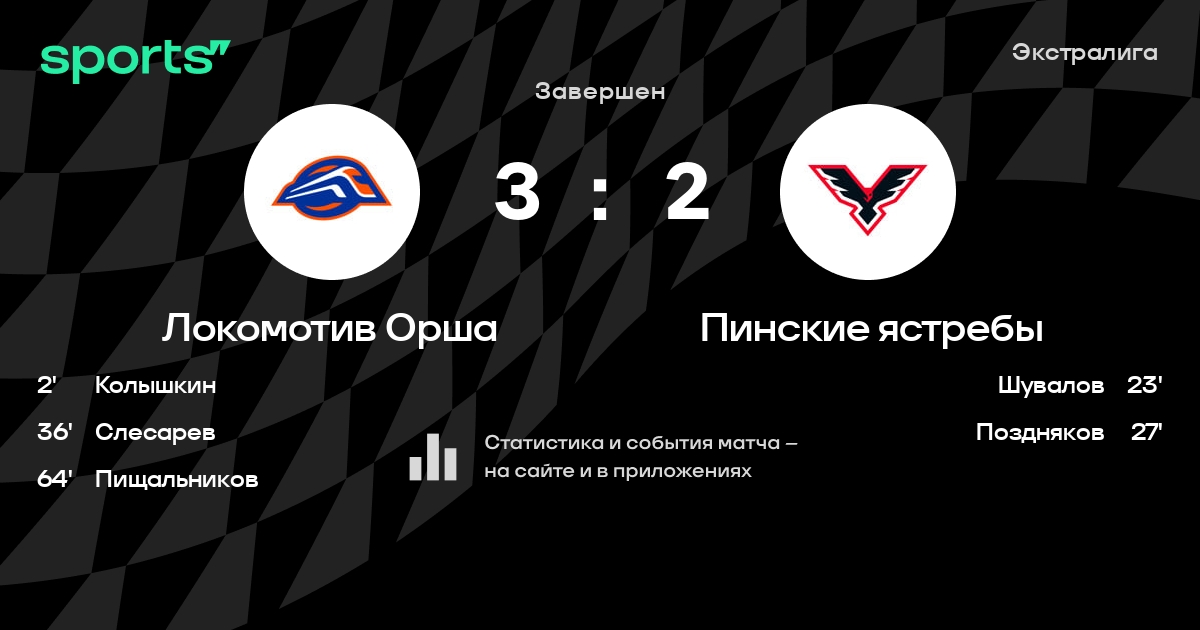 В прошедшем матче в рамках турнира Экстралига состоялась встреча команд Локомотив Орша - Пинские ястребы в городе Орша (Беларусь) на стадионе Ледовая арена Орша (вместимость - 3500)