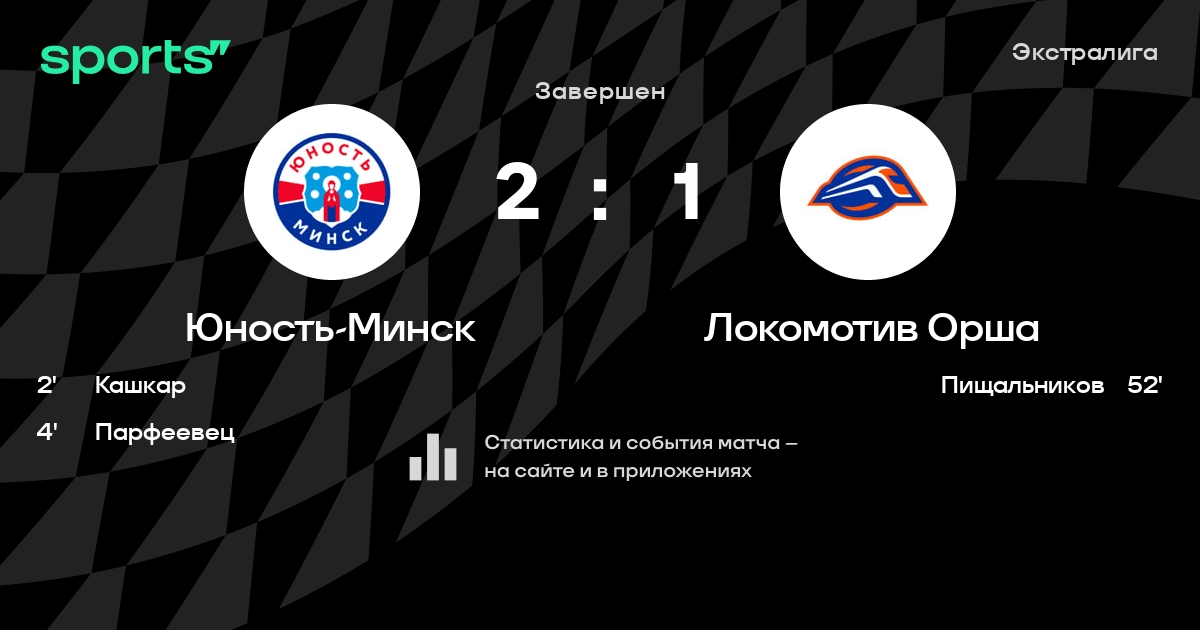 В прошедшем матче в рамках турнира Экстралига состоялась встреча команд Юность-Минск - Локомотив Орша в городе Минск (Беларусь) на стадионе Чижовка-Арена (вместимость - 9487)