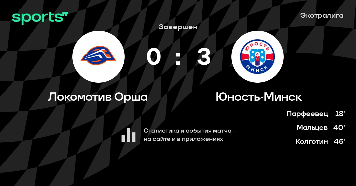 В прошедшем матче в рамках турнира Экстралига состоялась встреча команд Локомотив Орша - Юность-Минск в городе Орша (Беларусь) на стадионе Ледовая арена Орша (вместимость - 3500)