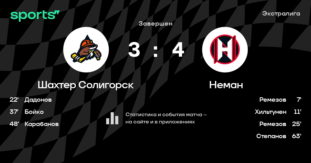 В прошедшем матче в рамках турнира Экстралига состоялась встреча команд Шахтер Солигорск - Неман в городе Солигорск (Беларусь) на стадионе Ледовый дворец спорта Солигорск (вместимость - 1800)