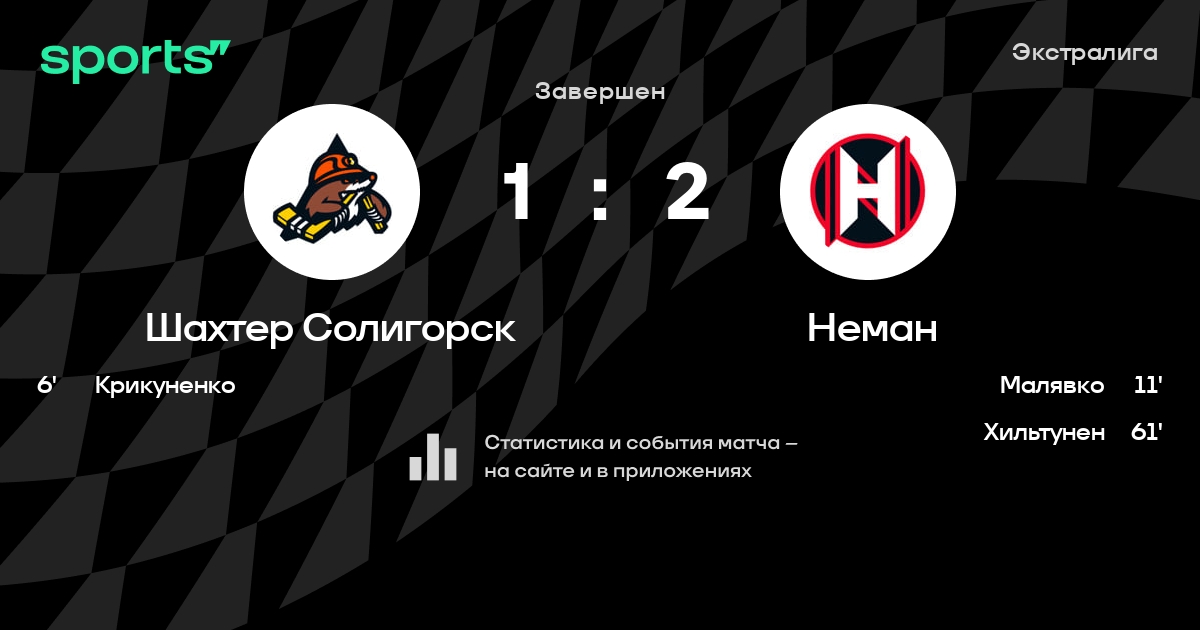 В прошедшем матче в рамках турнира Экстралига состоялась встреча команд Шахтер Солигорск - Неман в городе Солигорск (Беларусь) на стадионе Ледовый дворец спорта Солигорск (вместимость - 1800)