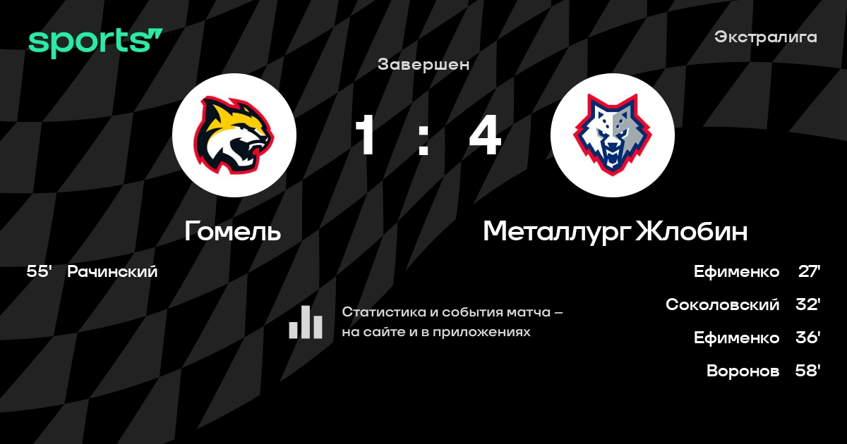 В прошедшем матче в рамках турнира Экстралига состоялась встреча команд Гомель - Металлург Жлобин в городе Гомель (Беларусь) на стадионе Ледовый дворец Гомель (вместимость - 2700)