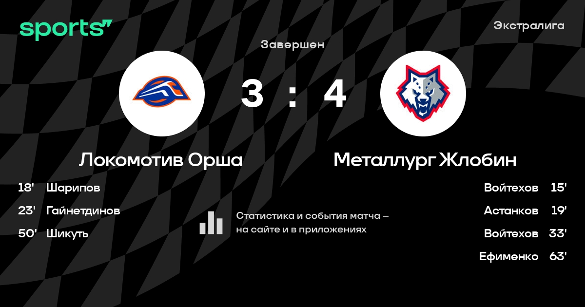 В прошедшем матче в рамках турнира Экстралига состоялась встреча команд Локомотив Орша - Металлург Жлобин в городе Орша (Беларусь) на стадионе Ледовая арена Орша (вместимость - 3500)