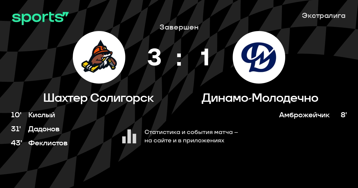 В прошедшем матче в рамках турнира Экстралига состоялась встреча команд Шахтер Солигорск - Динамо-Молодечно в городе Солигорск (Беларусь) на стадионе Ледовый дворец спорта Солигорск (вместимость - 1800)