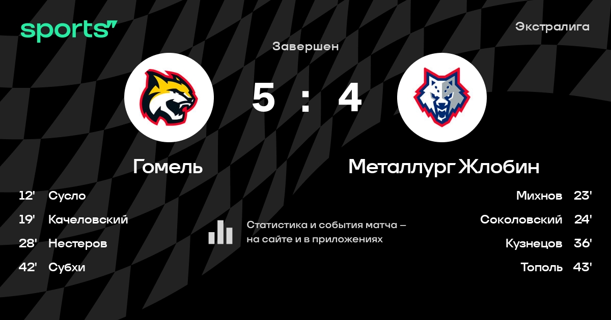 В прошедшем матче в рамках турнира Экстралига состоялась встреча команд Гомель - Металлург Жлобин в городе Гомель (Беларусь) на стадионе Ледовый дворец Гомель (вместимость - 2700)