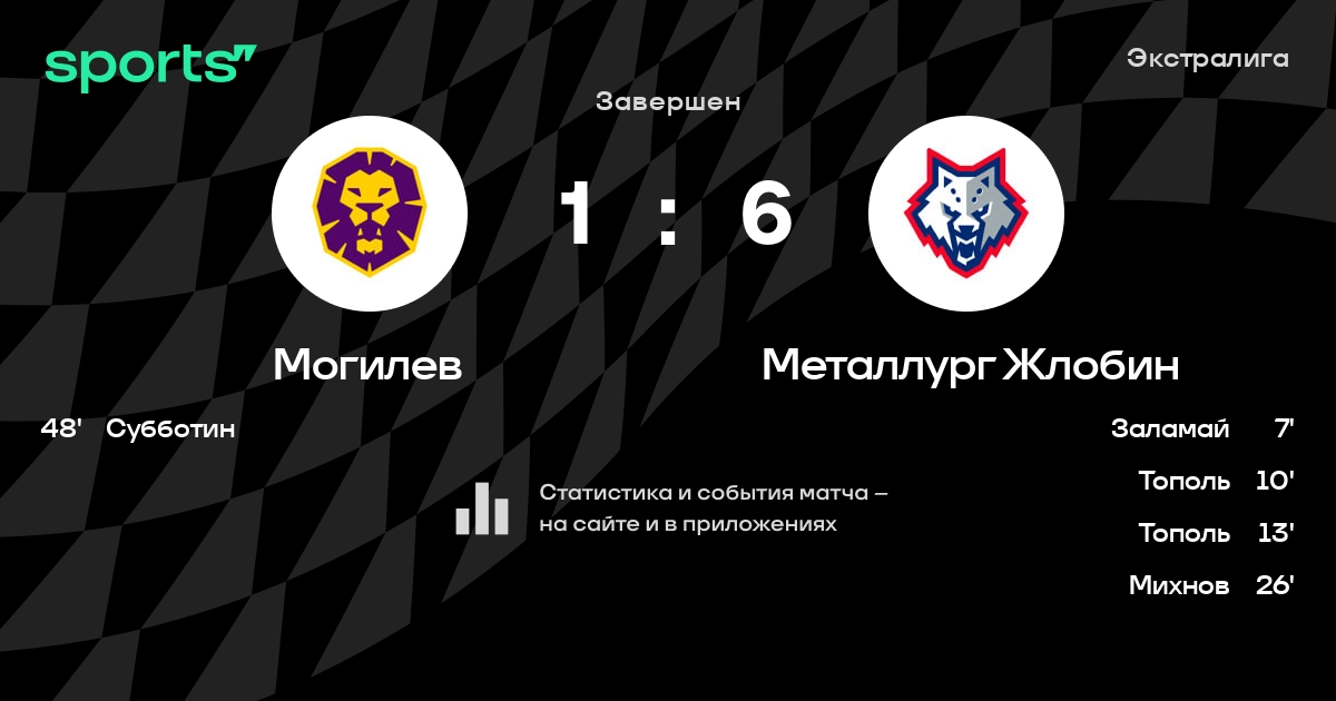 В прошедшем матче в рамках турнира Экстралига состоялась встреча команд Могилев - Металлург Жлобин в городе Могилев (Беларусь) на стадионе Ледовый дворец спорта Могилев (вместимость - 3048)
