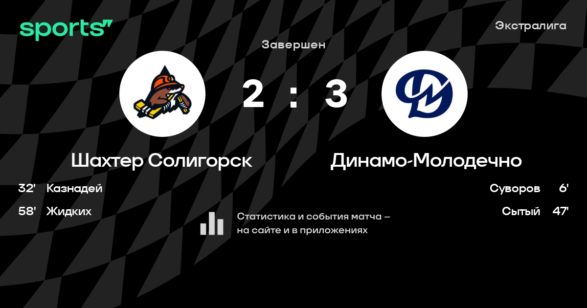 В прошедшем матче в рамках турнира Экстралига состоялась встреча команд Шахтер Солигорск - Динамо-Молодечно в городе Солигорск (Беларусь) на стадионе Ледовый дворец спорта Солигорск (вместимость - 1800)