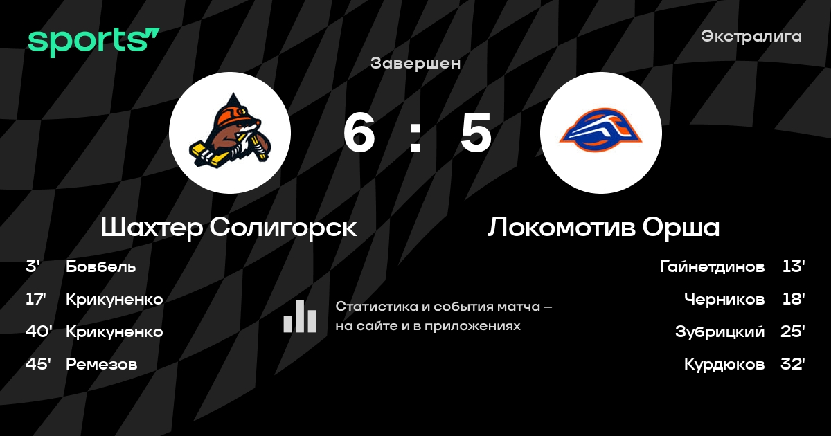 В прошедшем матче в рамках турнира Экстралига состоялась встреча команд Шахтер Солигорск - Локомотив Орша в городе Солигорск (Беларусь) на стадионе Ледовый дворец спорта Солигорск (вместимость - 1800)