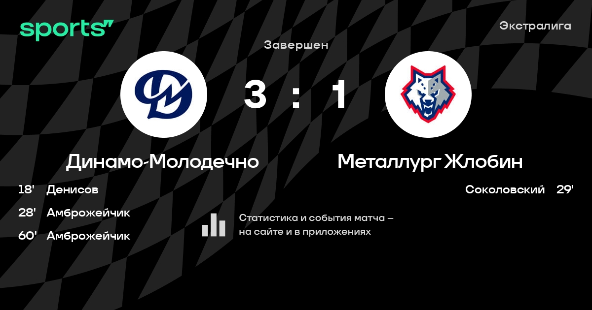 В прошедшем матче в рамках турнира Экстралига состоялась встреча команд Динамо-Молодечно - Металлург Жлобин в городе Молодечно (Беларусь) на стадионе Ледовый дворец Молодечно (вместимость - 2000)