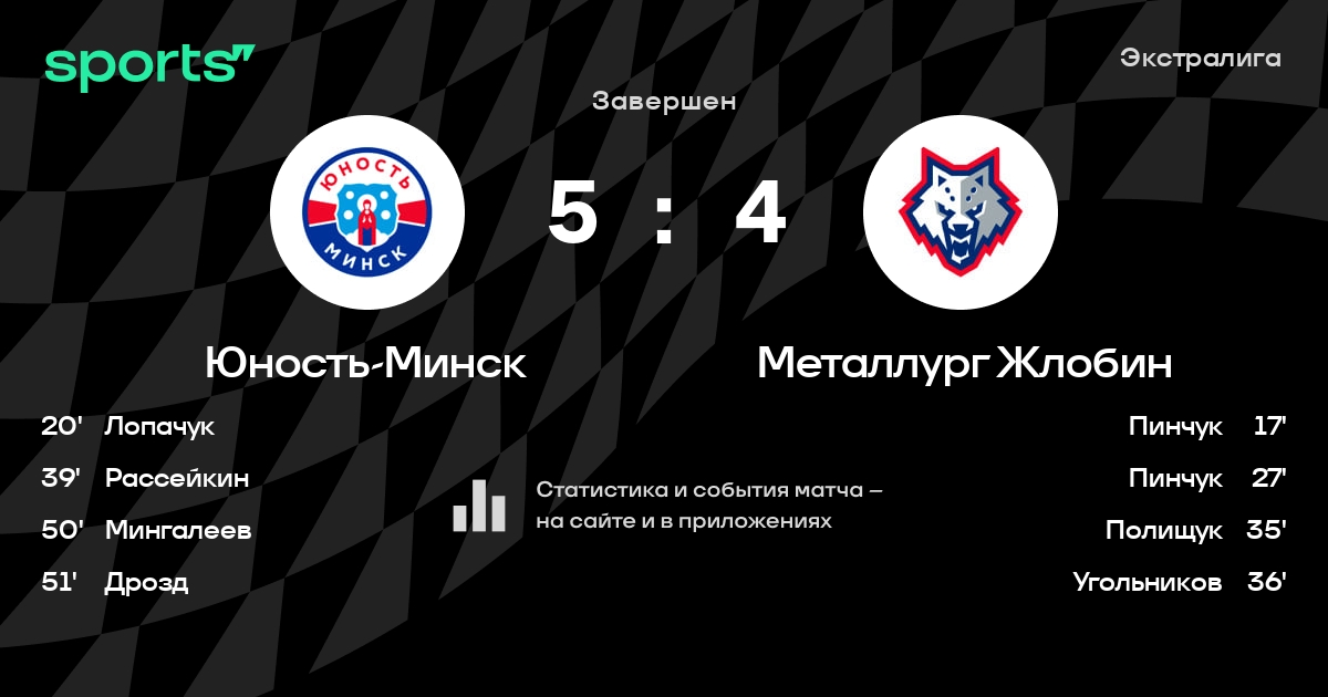 В прошедшем матче в рамках турнира Экстралига состоялась встреча команд Юность-Минск - Металлург Жлобин в городе Минск (Беларусь) на стадионе Чижовка-Арена (вместимость - 9487)