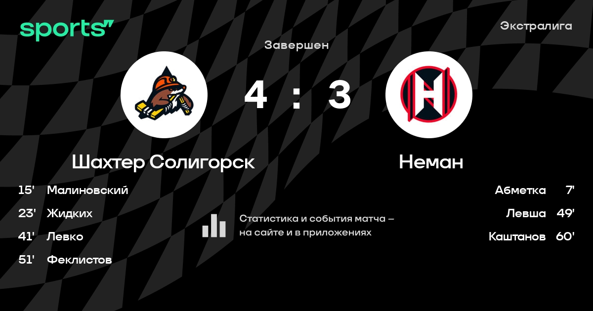 В прошедшем матче в рамках турнира Экстралига состоялась встреча команд Шахтер Солигорск - Неман в городе Солигорск (Беларусь) на стадионе Ледовый дворец спорта Солигорск (вместимость - 1800)