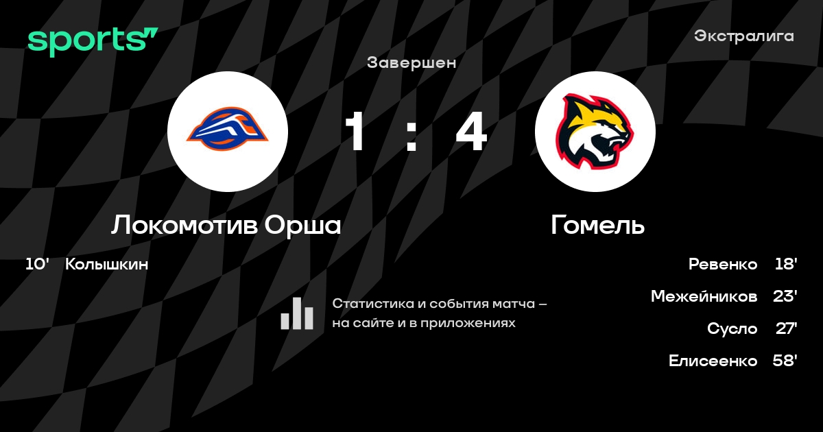В прошедшем матче в рамках турнира Экстралига состоялась встреча команд Локомотив Орша - Гомель в городе Орша (Беларусь) на стадионе Ледовая арена Орша (вместимость - 3500)