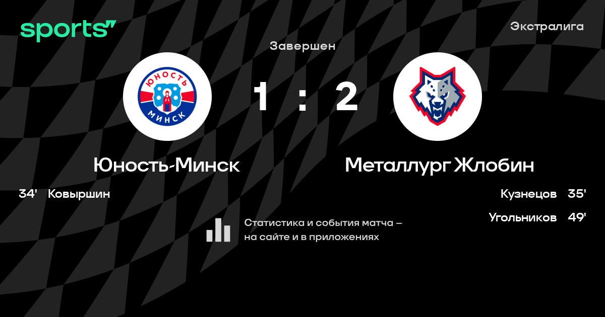 В прошедшем матче в рамках турнира Экстралига состоялась встреча команд Юность-Минск - Металлург Жлобин в городе Минск (Беларусь) на стадионе Чижовка-Арена (вместимость - 9487)