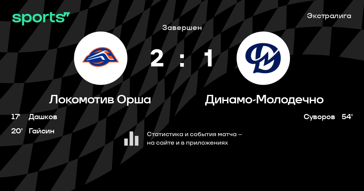 В прошедшем матче в рамках турнира Экстралига состоялась встреча команд Локомотив Орша - Динамо-Молодечно в городе Орша (Беларусь) на стадионе Ледовая арена Орша (вместимость - 3500)