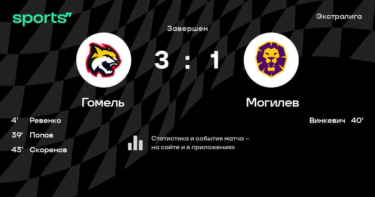 В прошедшем матче в рамках турнира Экстралига состоялась встреча команд Гомель - Могилев в городе Гомель (Беларусь) на стадионе Ледовый дворец Гомель (вместимость - 2700)