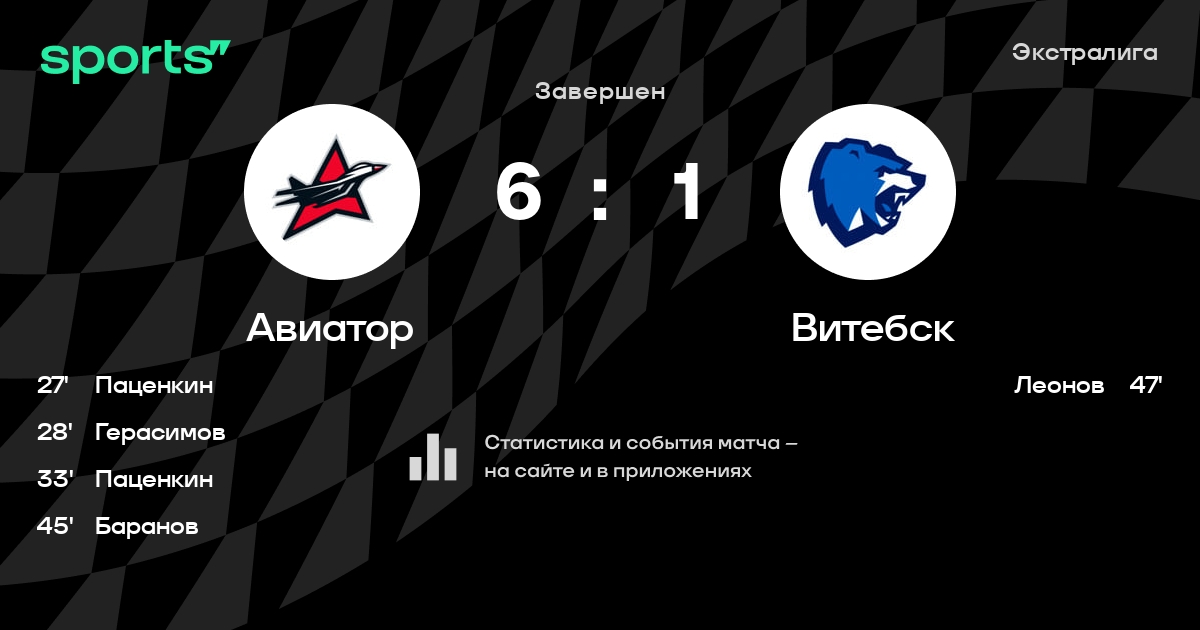 В прошедшем матче в рамках турнира Экстралига состоялась встреча команд Авиатор - Витебск в городе Барановичи (Беларусь) на стадионе Ледовый дворец спорта Барановичи (вместимость - 2100)