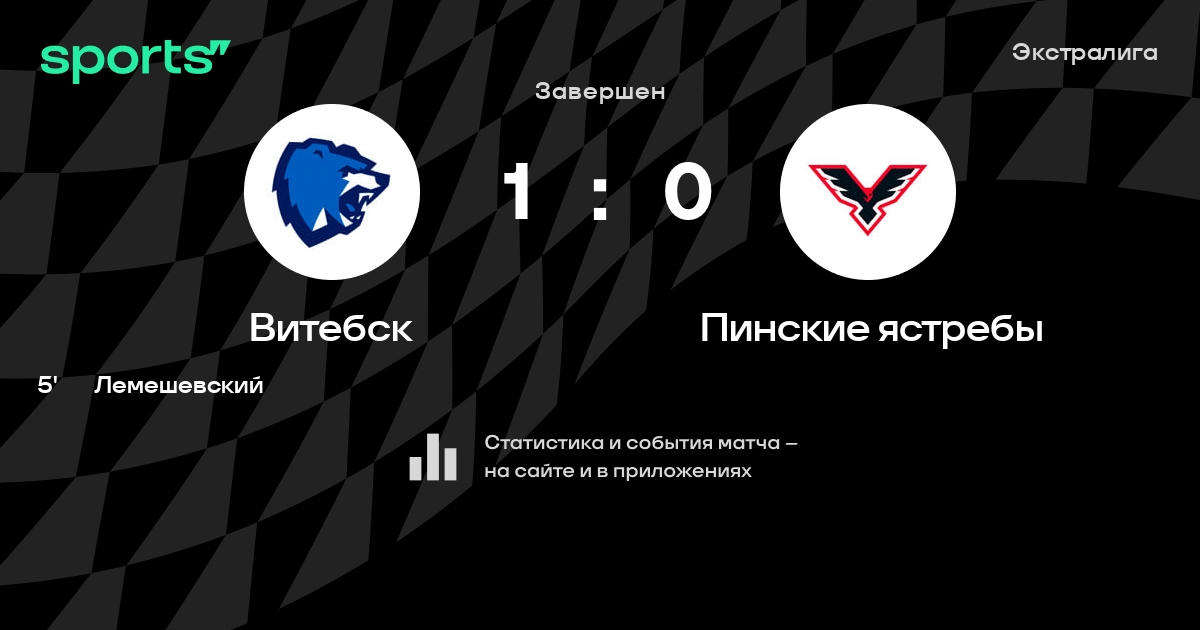 В прошедшем матче в рамках турнира Экстралига состоялась встреча команд Витебск - Пинские ястребы в городе Витебск (Беларусь) на стадионе Витебский дворец спорта (вместимость - 2000)