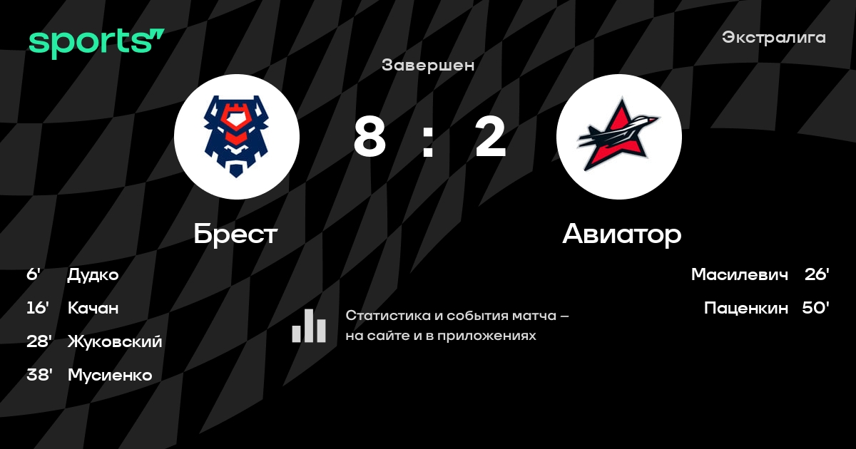 В прошедшем матче в рамках турнира Экстралига состоялась встреча команд Брест - Авиатор в городе Брест (Беларусь) на стадионе Ледовый дворец Брест (вместимость - 2000)