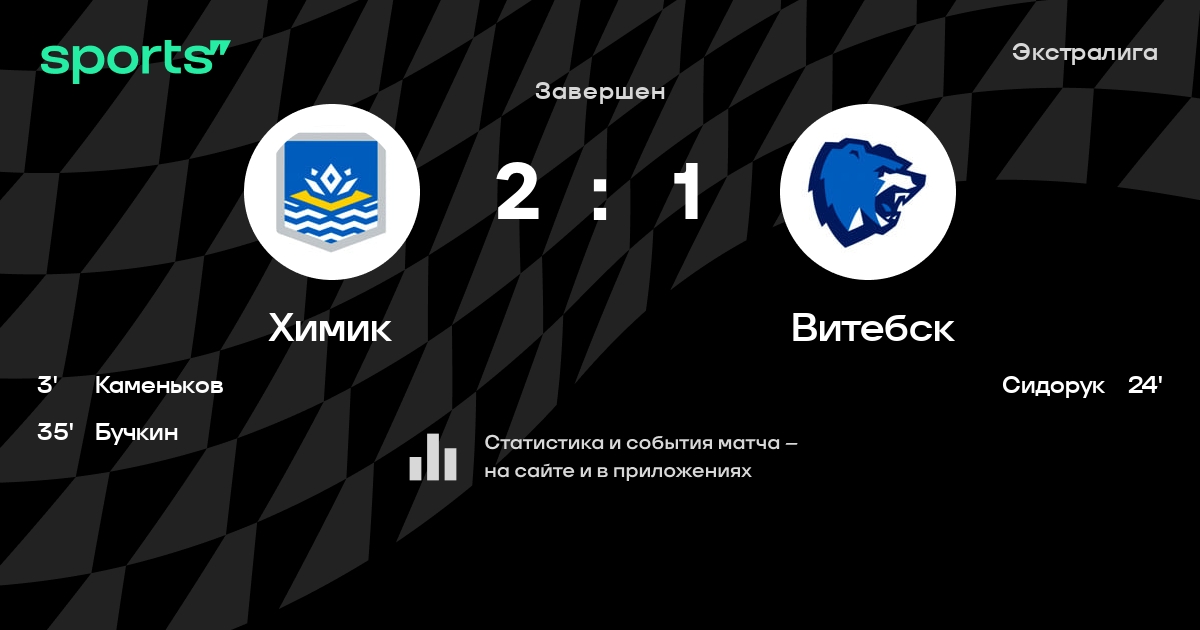 В прошедшем матче в рамках турнира Экстралига состоялась встреча команд Химик - Витебск в городе Новополоцк (Беларусь) на стадионе Дворец культуры и спорта (вместимость - 1200)