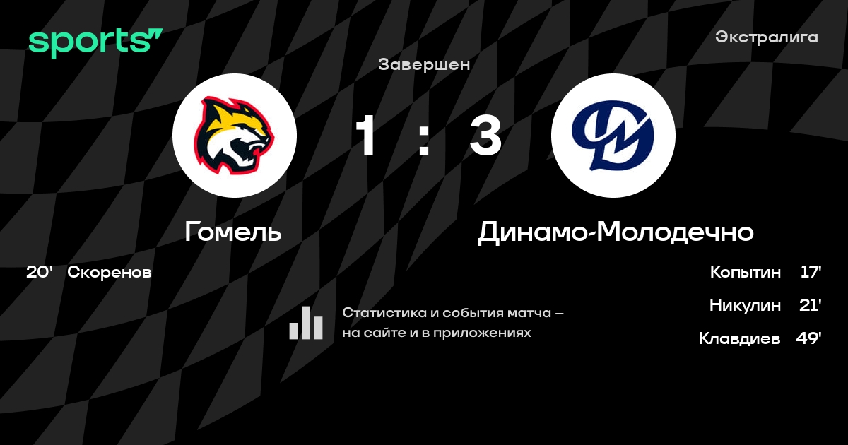 В прошедшем матче в рамках турнира Экстралига состоялась встреча команд Гомель - Динамо-Молодечно в городе Гомель (Беларусь) на стадионе Ледовый дворец Гомель (вместимость - 2700)