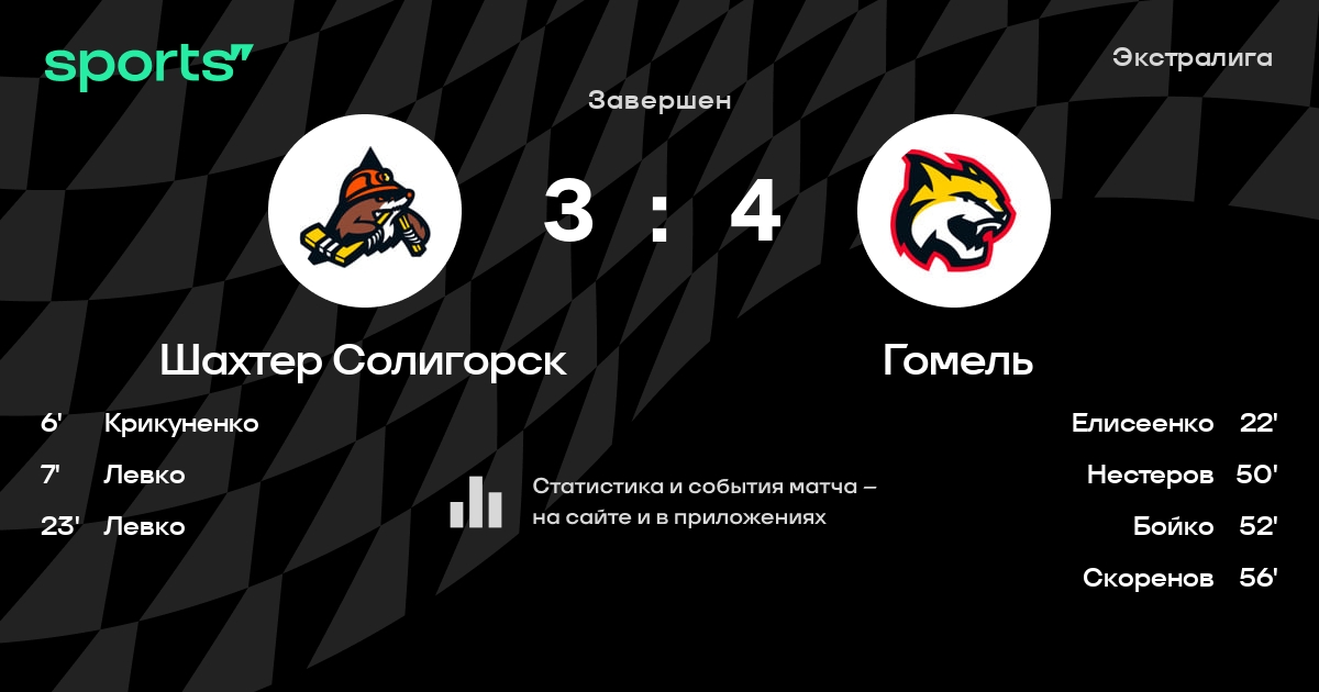 В прошедшем матче в рамках турнира Экстралига состоялась встреча команд Шахтер Солигорск - Гомель в городе Солигорск (Беларусь) на стадионе Ледовый дворец спорта Солигорск (вместимость - 1800)