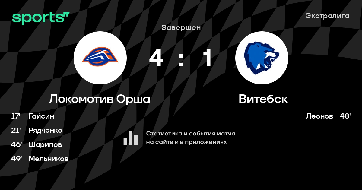 В прошедшем матче в рамках турнира Экстралига состоялась встреча команд Локомотив Орша - Витебск в городе Орша (Беларусь) на стадионе Ледовая арена Орша (вместимость - 3500)