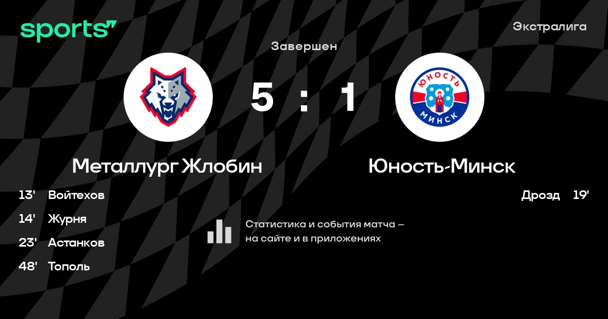 В прошедшем матче в рамках турнира Экстралига состоялась встреча команд Металлург Жлобин - Юность-Минск в городе Жлобин (Беларусь) на стадионе Ледовый дворец Металлург (вместимость - 2018)