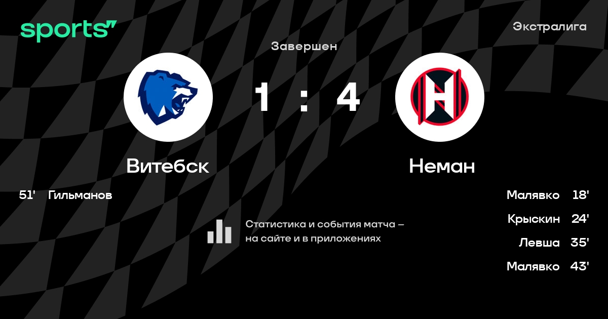 В прошедшем матче в рамках турнира Экстралига состоялась встреча команд Витебск - Неман в городе Витебск (Беларусь) на стадионе Витебский дворец спорта (вместимость - 2000)