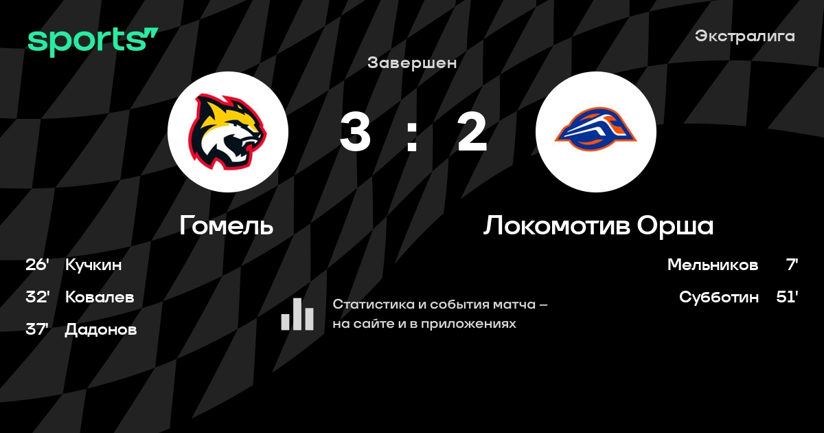 В прошедшем матче в рамках турнира Экстралига состоялась встреча команд Гомель - Локомотив Орша в городе Гомель (Беларусь) на стадионе Ледовый дворец Гомель (вместимость - 2700)