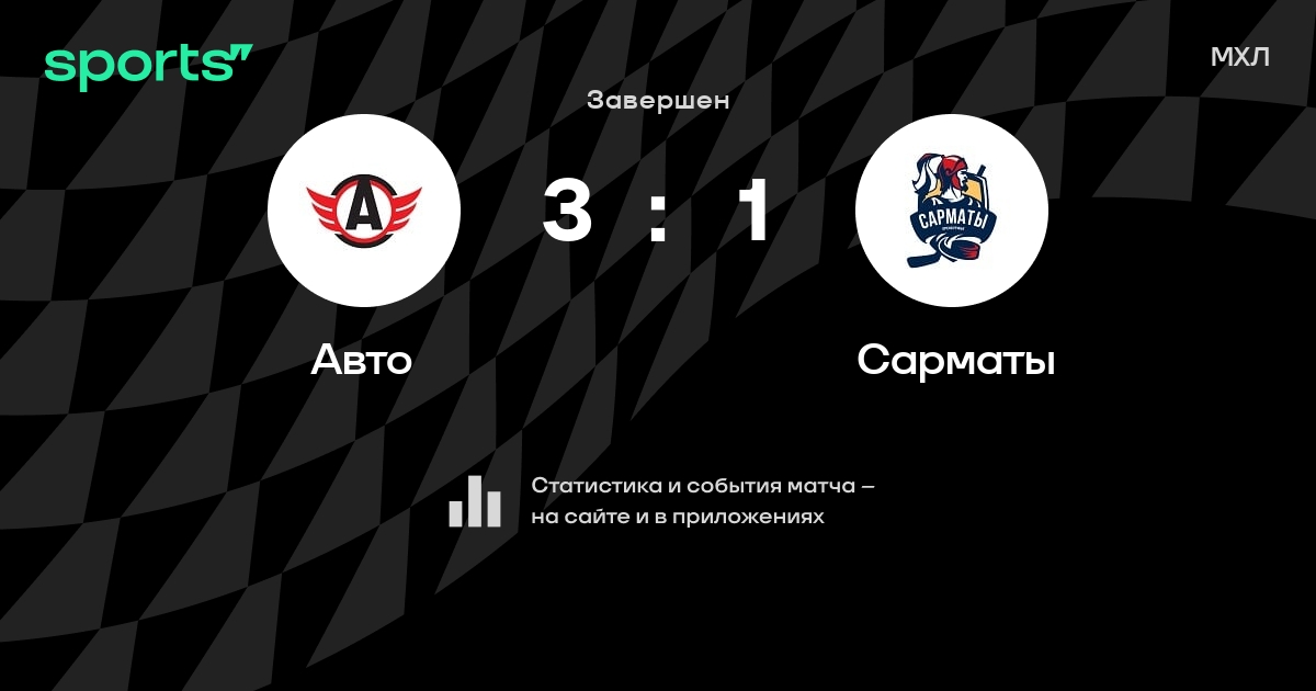 В прошедшем матче в рамках турнира МХЛ состоялась встреча команд Авто - Сарматы в городе Екатеринбург (Россия) на стадионе КСК Уралец (вместимость - 5570)