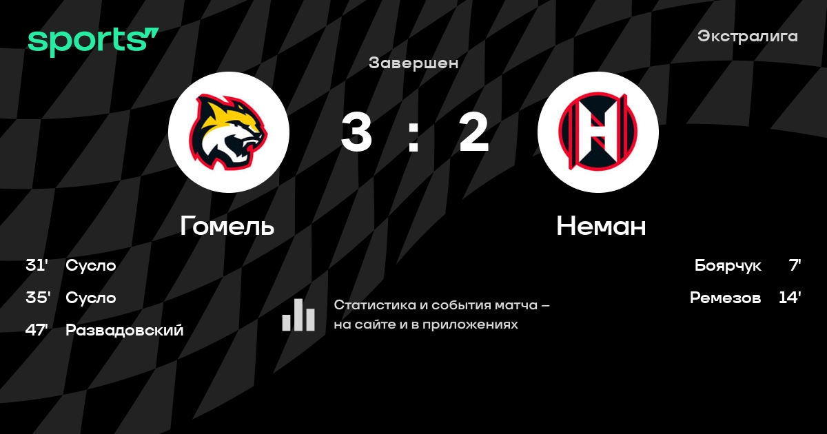 В прошедшем матче в рамках турнира Экстралига состоялась встреча команд Гомель - Неман в городе Гомель (Беларусь) на стадионе Ледовый дворец Гомель (вместимость - 2700)
