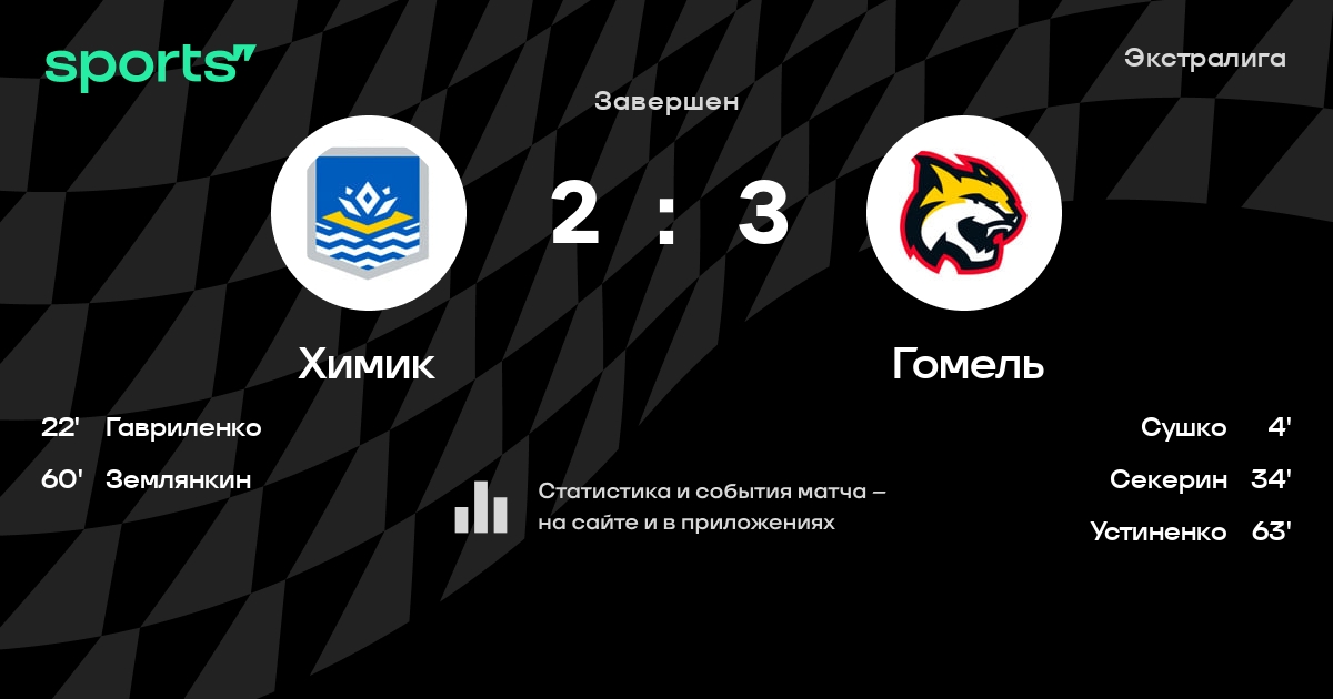 В прошедшем матче в рамках турнира Экстралига состоялась встреча команд Химик - Гомель в городе Новополоцк (Беларусь) на стадионе Дворец культуры и спорта (вместимость - 1200)