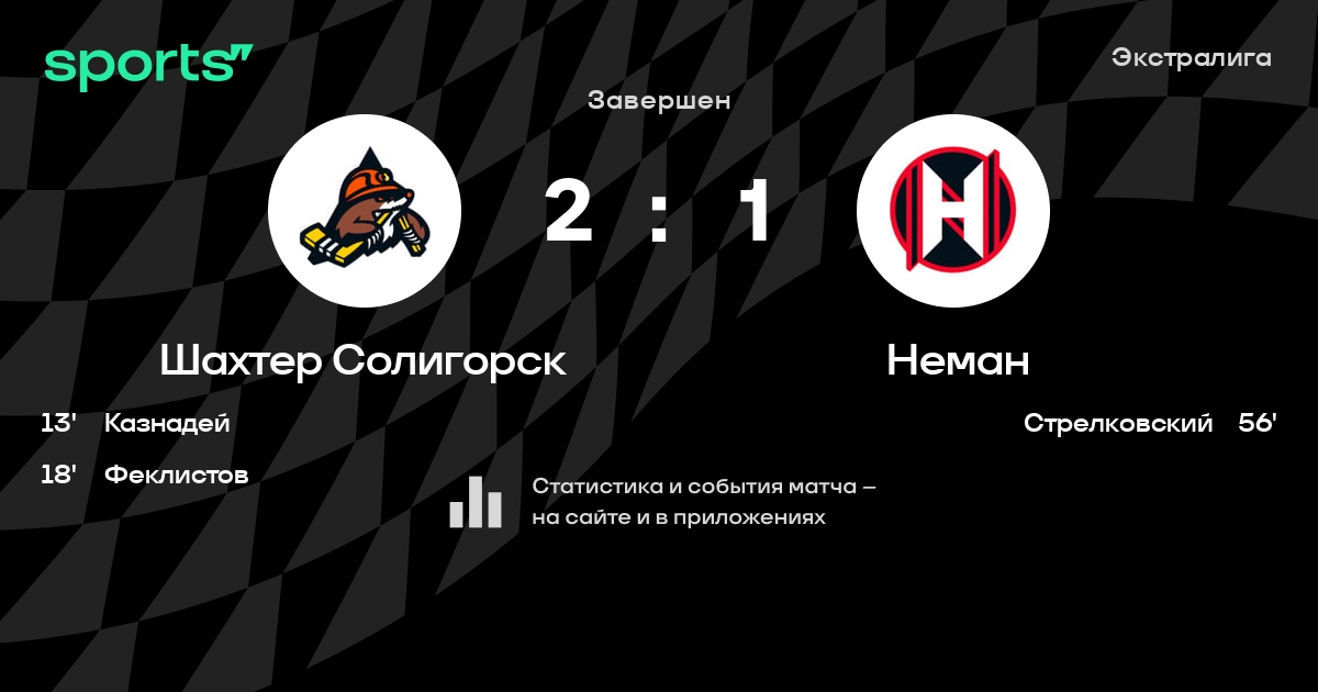В прошедшем матче в рамках турнира Экстралига состоялась встреча команд Шахтер Солигорск - Неман в городе Солигорск (Беларусь) на стадионе Ледовый дворец спорта Солигорск (вместимость - 1800)