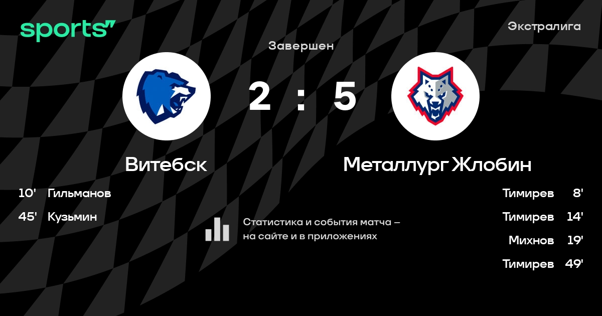 В прошедшем матче в рамках турнира Экстралига состоялась встреча команд Витебск - Металлург Жлобин в городе Витебск (Беларусь) на стадионе Витебский дворец спорта (вместимость - 2000)