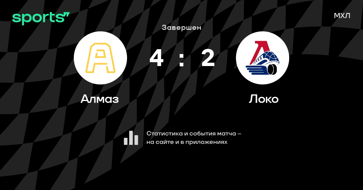 В прошедшем матче в рамках турнира МХЛ состоялась встреча команд Алмаз - Локо в городе Череповец (Россия) на стадионе Ледовый дворец (вместимость - 6000)