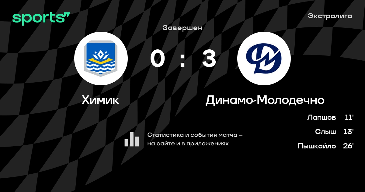 В прошедшем матче в рамках турнира Экстралига состоялась встреча команд Химик - Динамо-Молодечно в городе Новополоцк (Беларусь) на стадионе Дворец культуры и спорта (вместимость - 1200)