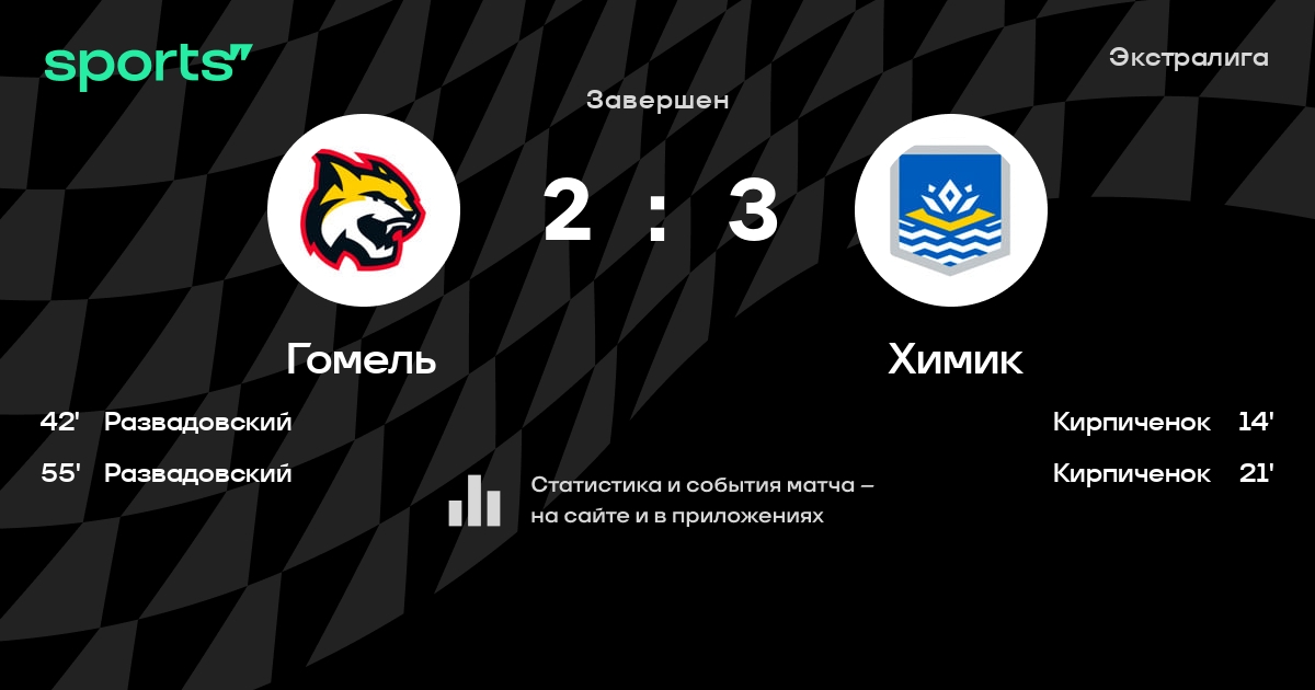 В прошедшем матче в рамках турнира Экстралига состоялась встреча команд Гомель - Химик в городе Гомель (Беларусь) на стадионе Ледовый дворец Гомель (вместимость - 2700)