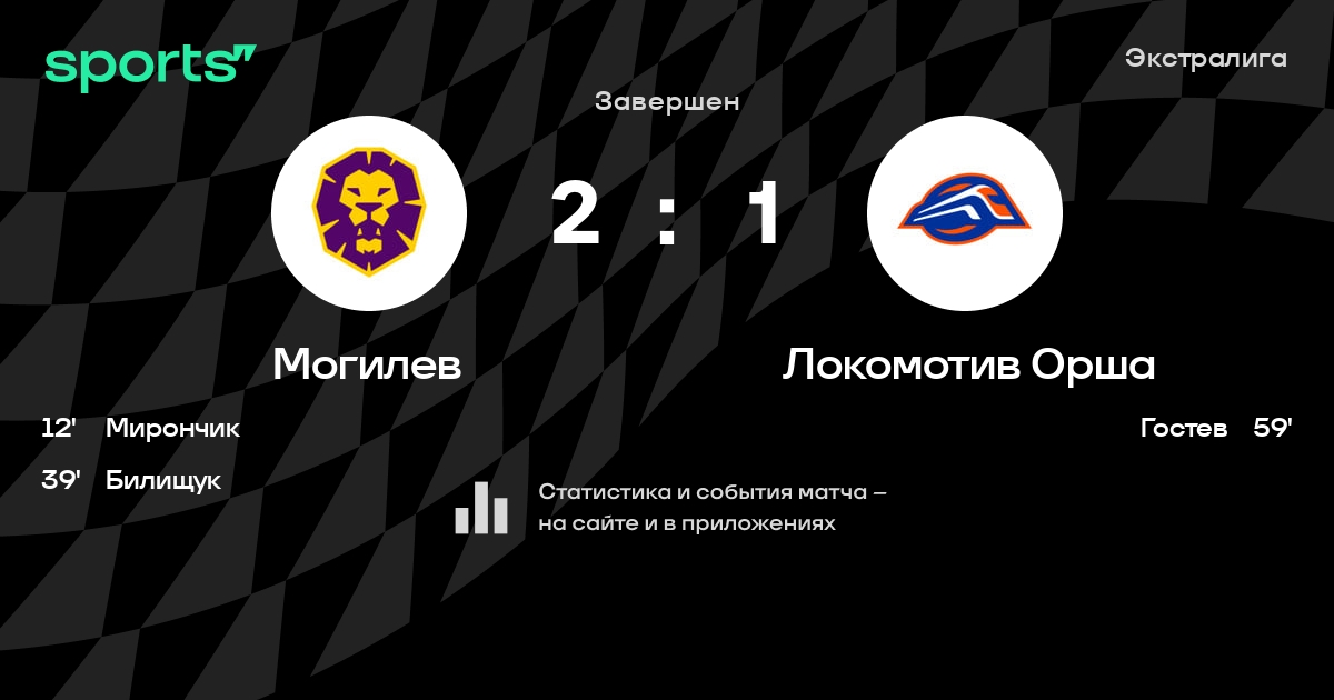 В прошедшем матче в рамках турнира Экстралига состоялась встреча команд Могилев - Локомотив Орша в городе Могилев (Беларусь) на стадионе Ледовый дворец спорта Могилев (вместимость - 3048)