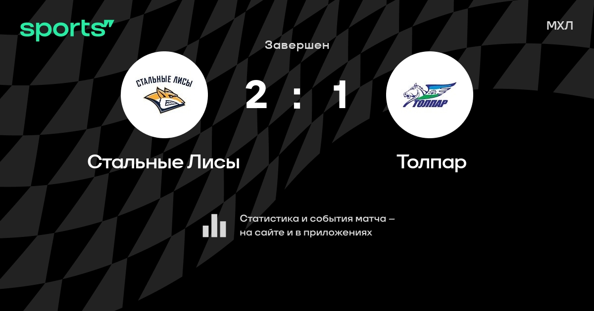 В прошедшем матче в рамках турнира МХЛ состоялась встреча команд Стальные Лисы - Толпар в городе Магнитогорск (Россия) на стадионе Арена-Металлург (вместимость - 7700)