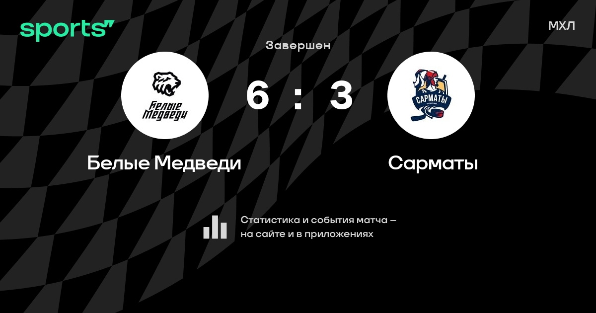 В прошедшем матче в рамках турнира МХЛ состоялась встреча команд Белые Медведи - Сарматы в городе Челябинск (Россия) на стадионе Арена Трактор (вместимость - 7500)