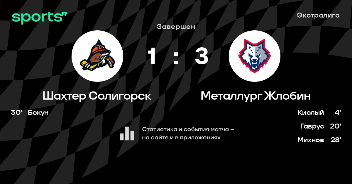 В прошедшем матче в рамках турнира Экстралига состоялась встреча команд Шахтер Солигорск - Металлург Жлобин в городе Солигорск (Беларусь) на стадионе Ледовый дворец спорта Солигорск (вместимость - 1800)