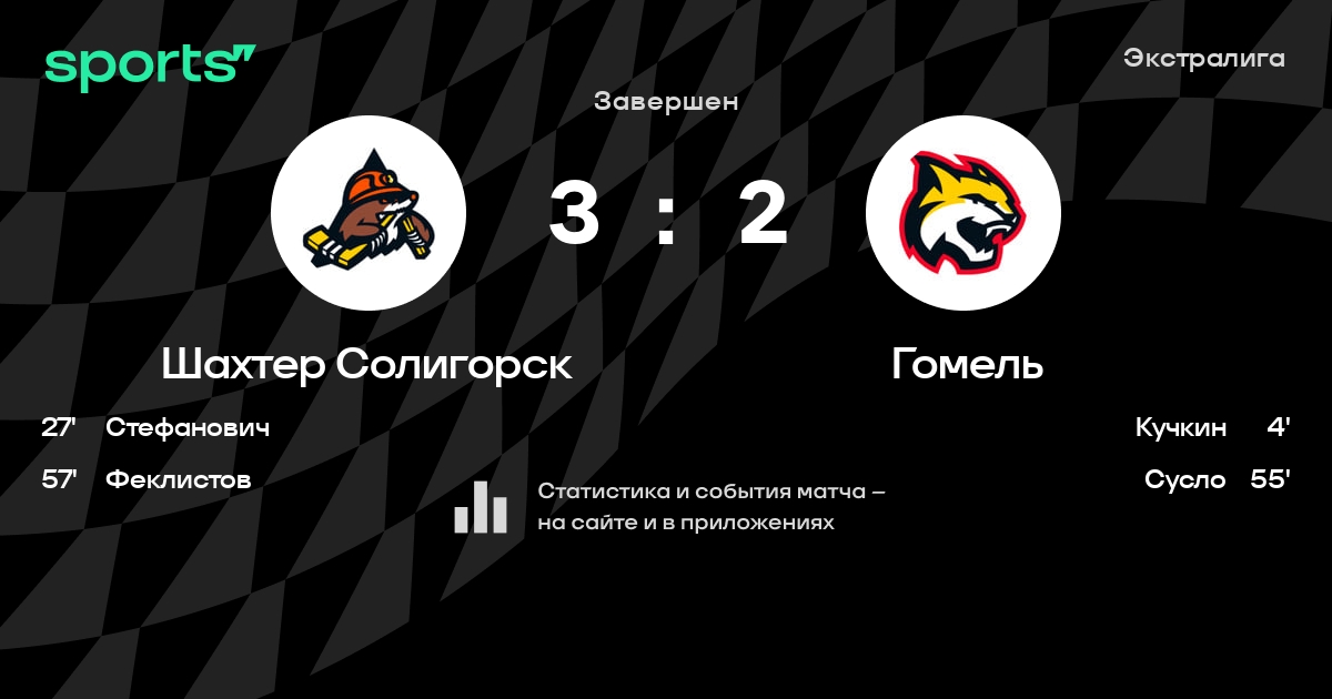 В прошедшем матче в рамках турнира Экстралига состоялась встреча команд Шахтер Солигорск - Гомель в городе Солигорск (Беларусь) на стадионе Ледовый дворец спорта Солигорск (вместимость - 1800)