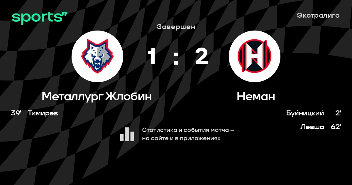 В прошедшем матче в рамках турнира Экстралига состоялась встреча команд Металлург Жлобин - Неман в городе Жлобин (Беларусь) на стадионе Ледовый дворец Металлург (вместимость - 2018)