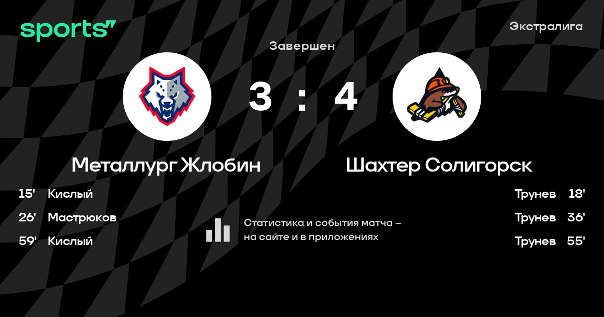 В прошедшем матче в рамках турнира Экстралига состоялась встреча команд Металлург Жлобин - Шахтер Солигорск в городе Жлобин (Беларусь) на стадионе Ледовый дворец Металлург (вместимость - 2018)