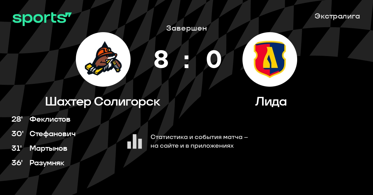 В прошедшем матче в рамках турнира Экстралига состоялась встреча команд Шахтер Солигорск - Лида в городе Солигорск (Беларусь) на стадионе Ледовый дворец спорта Солигорск (вместимость - 1800)