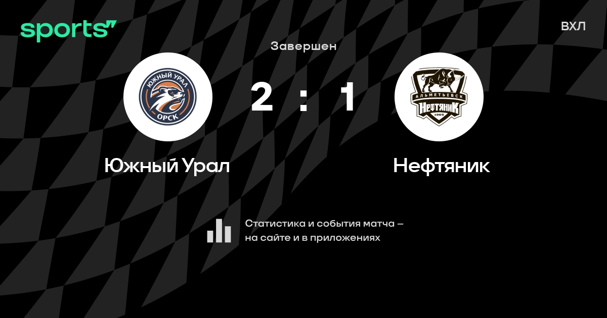 В прошедшем матче в рамках турнира ВХЛ состоялась встреча команд Южный Урал - Нефтяник в городе на стадионе Ice Palace Yubileyny со счетом 2 : 1.