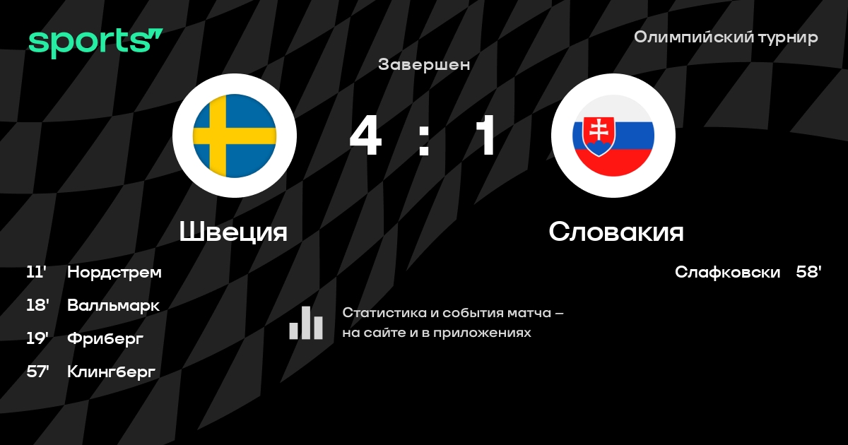 В прошедшем матче в рамках турнира Олимпийский турнир (2 тур) состоялась встреча команд Швеция - Словакия в городе на стадионе Cadillac Arena