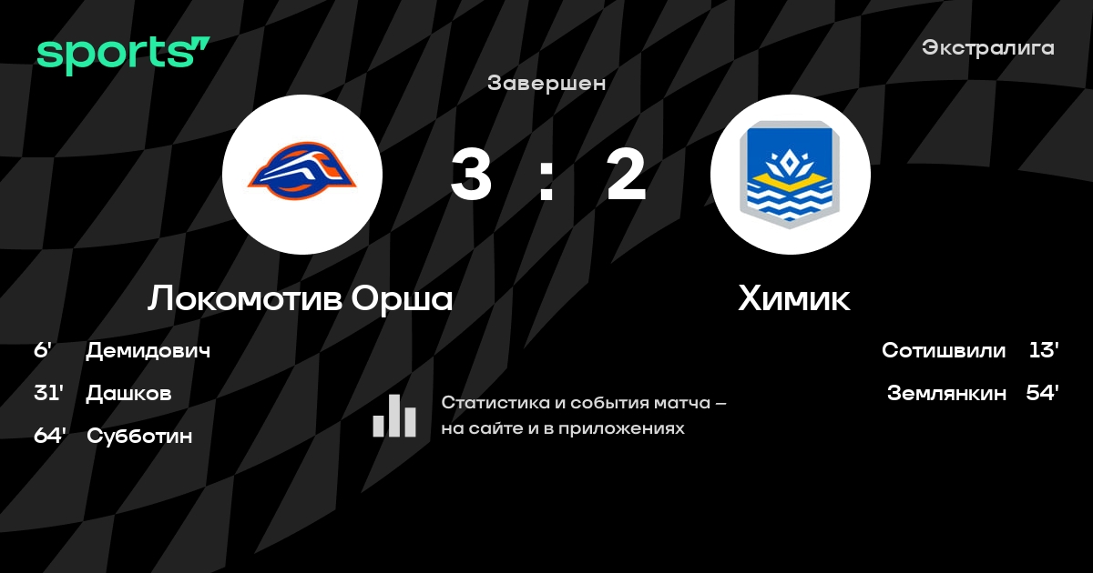 В прошедшем матче в рамках турнира Экстралига состоялась встреча команд Локомотив Орша - Химик в городе Орша (Беларусь) на стадионе Ледовая арена Орша (вместимость - 3500)