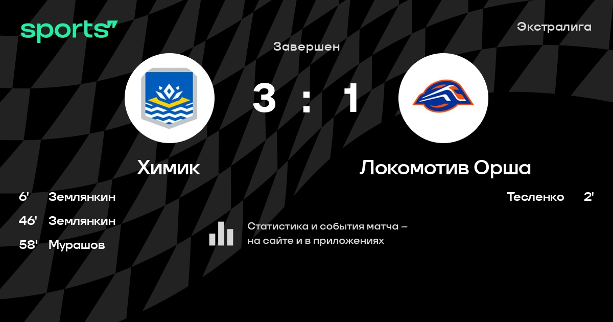 В прошедшем матче в рамках турнира Экстралига состоялась встреча команд Химик - Локомотив Орша в городе Новополоцк (Беларусь) на стадионе Дворец культуры и спорта (вместимость - 1200)